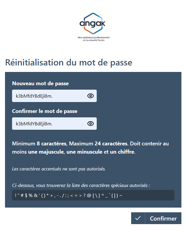 Le lien vous mène sur votre page de changement de mot de passe, attention votre nouveau mot de passe doit respecter les critères de sécurité et ne doit pas contenir des caractères accentués :